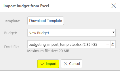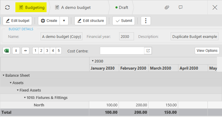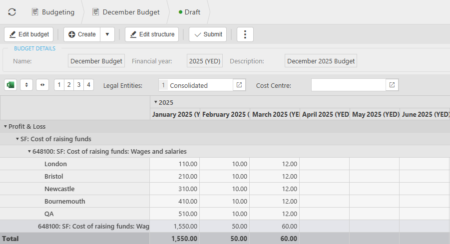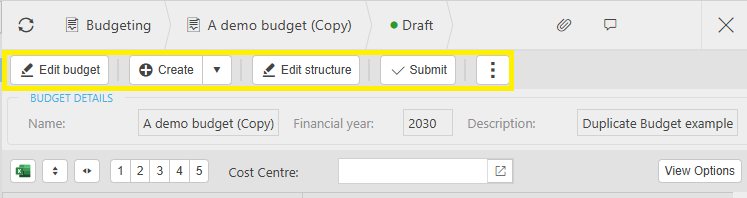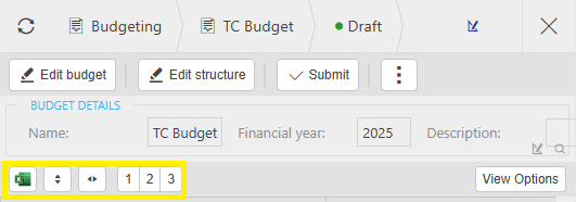 Edit structure: Takes you back into the wizard to edit the budget layout.