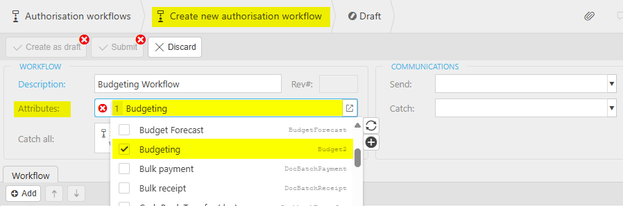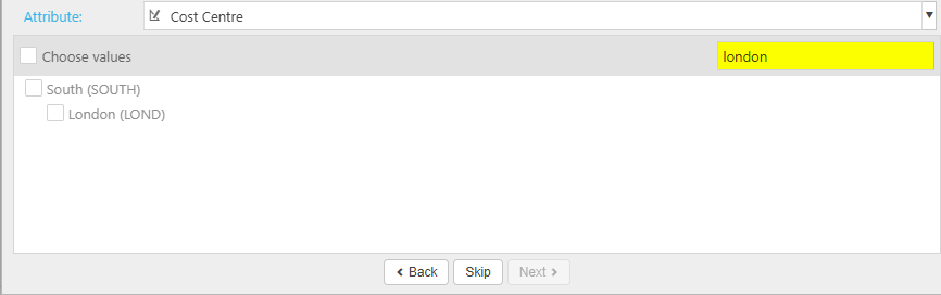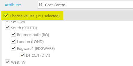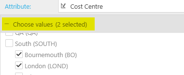 dropdown option to show the attributes that have been set up in iplicit i.e. Cost centre, Department, Project.