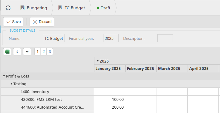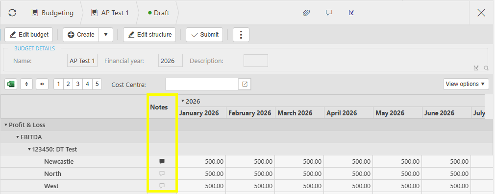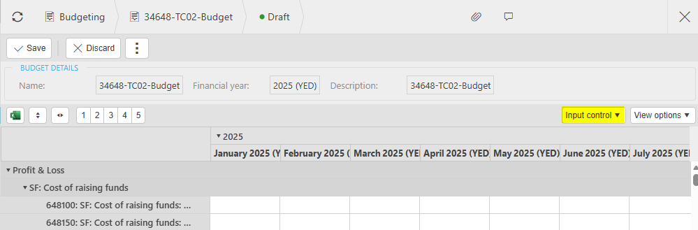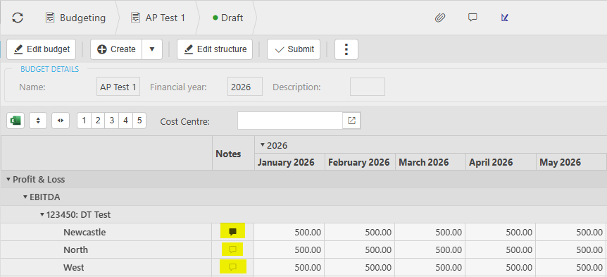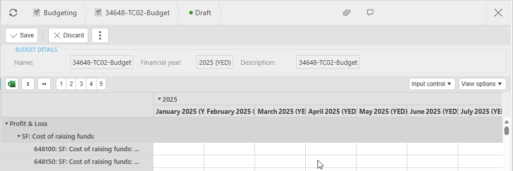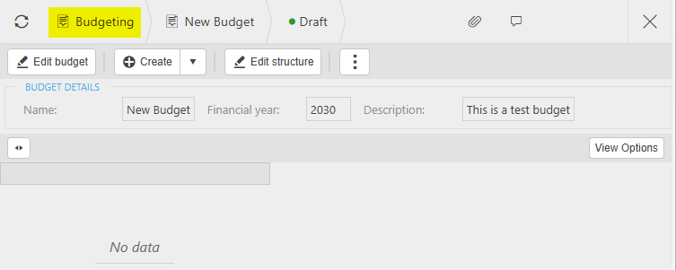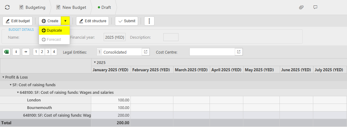 Select and open the Draft Budget to edit - The same screen will show once Create budget is selected from creating a new Budget.