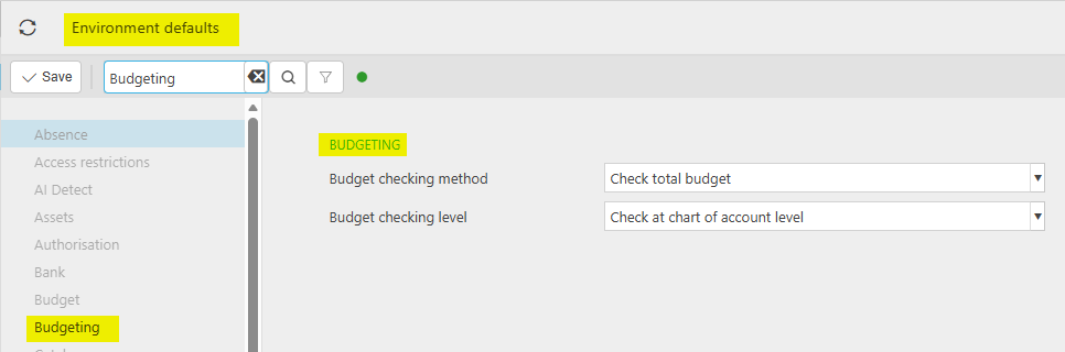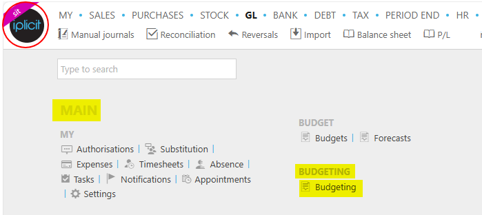 Select Budgeting / Budgeting from the Main section of the pulse menu -