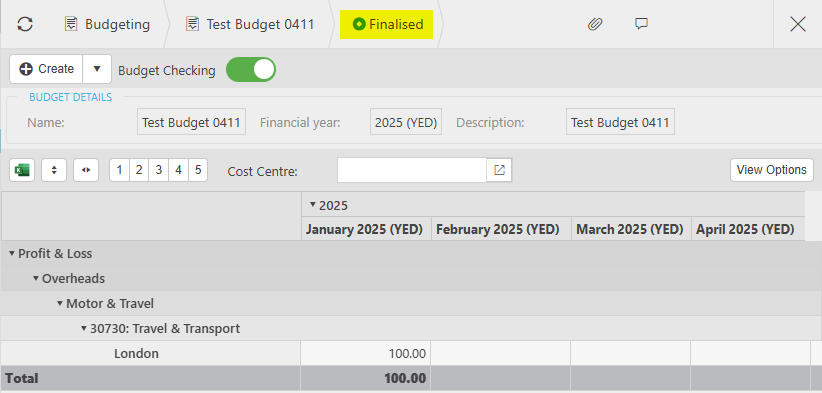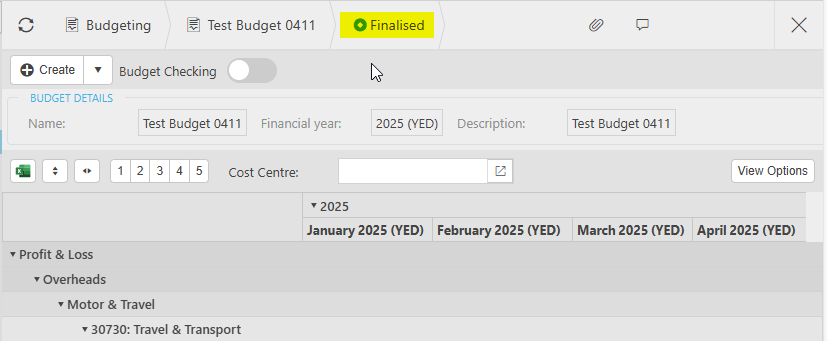 If an Authorisation workflow is not set up, then the Budget will be marked as Finalised.