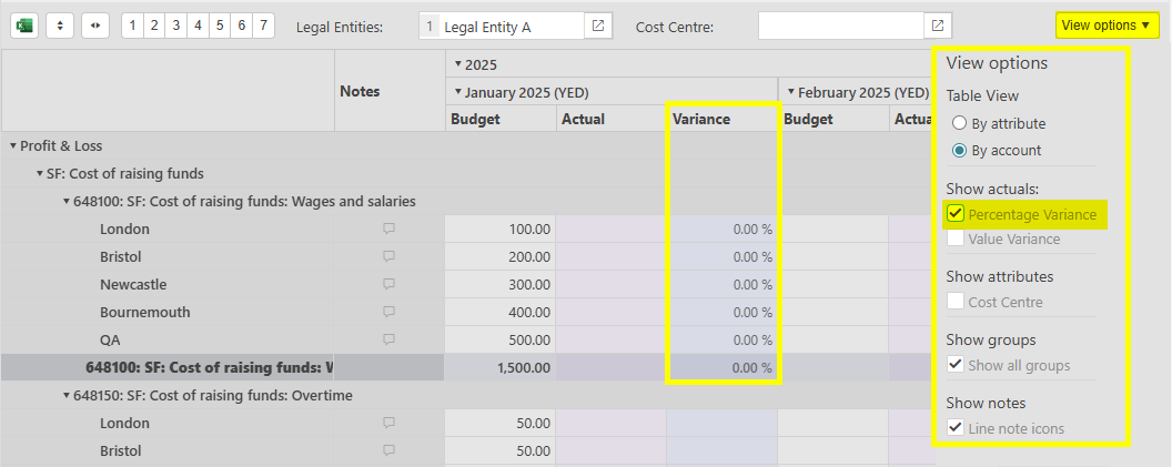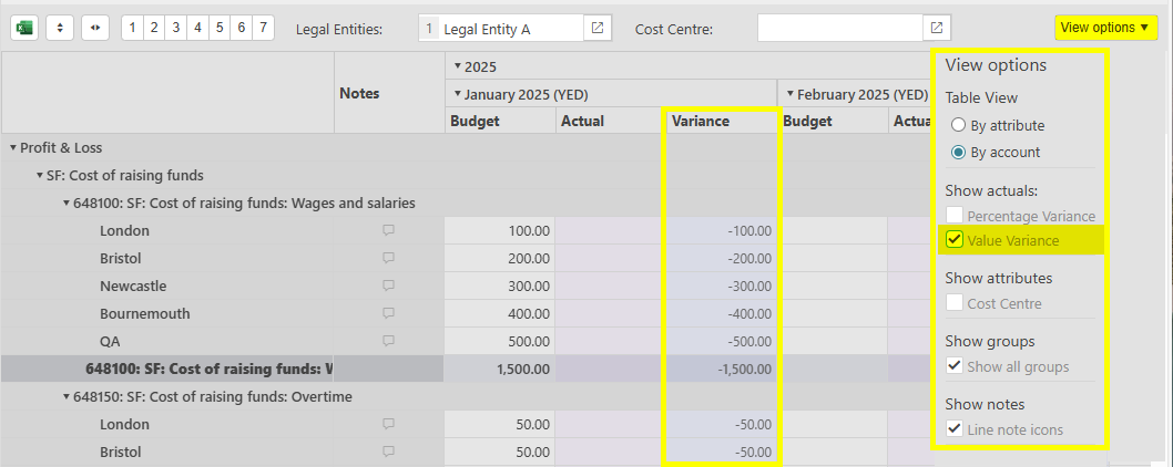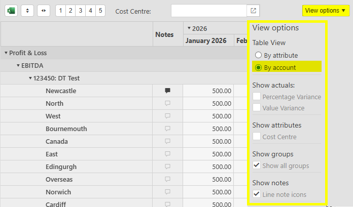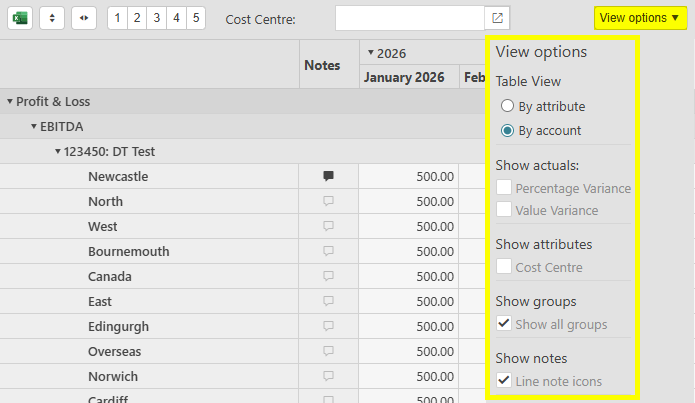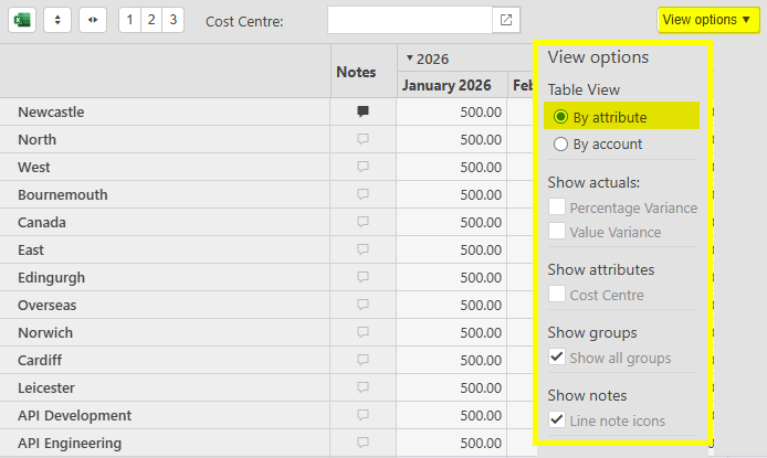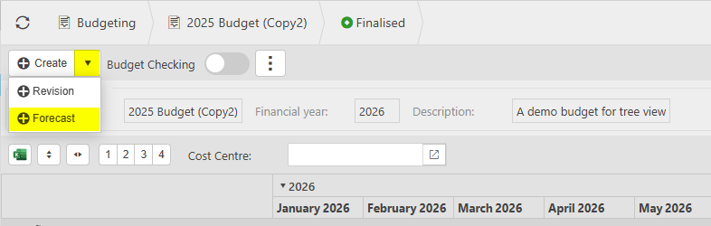 - Forecast: This is only available for Finalised budgets. It will be greyed out if the Budget is not the correct type for Forecast.
