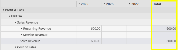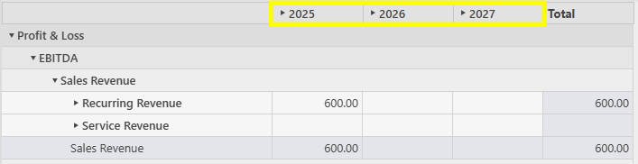 - Total spread: - Enter a value in the total column and it is divided equally across the periods.