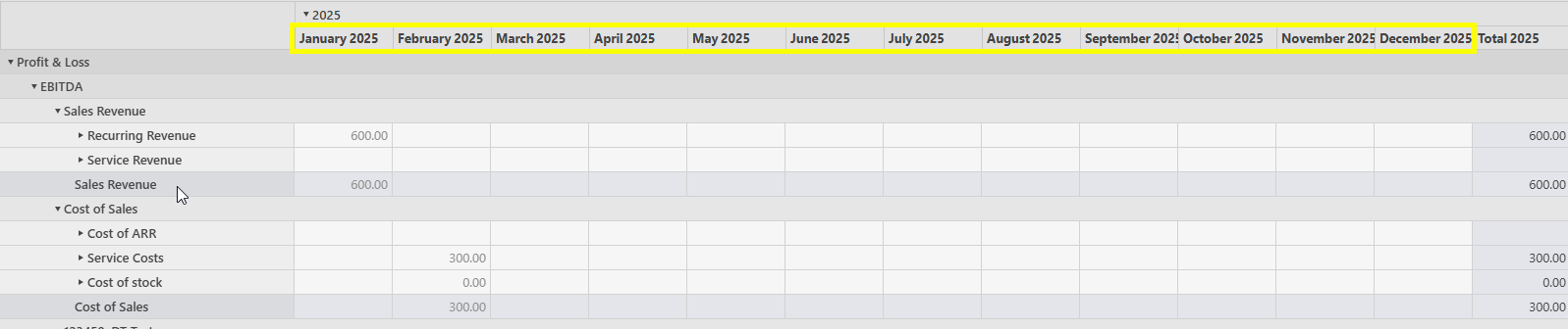 - Spread across periods: Enter a value in a period column and it will be copied to all remaining columns.