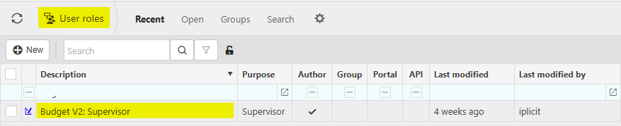 For a User to be able to create and update the budgets and budget templates, or so that they only have access to update budgets from existing templates or create a budget from a previous budget, then they must have the Budget Supervisor V2 User role assigned - see User roles.