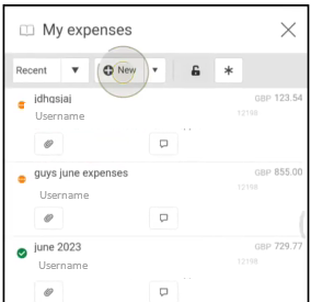 Once opened, the most recent Expenses will be displayed.