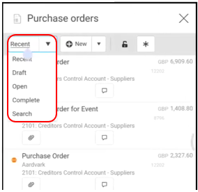 Use the Filter dropdown to see Recent, Draft, Open or Complete Orders. Or Search for a particular Order.