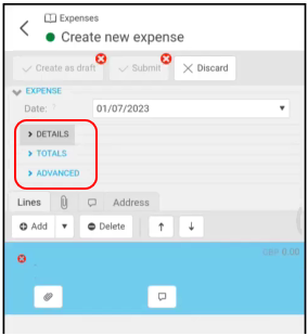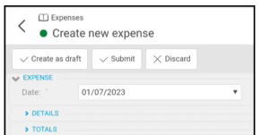 - Create as draft - to allow addition Expenses to be added later. e.g. Adding Expenses for a month's Claim Form.