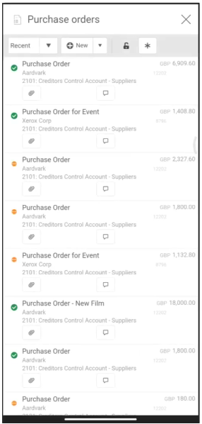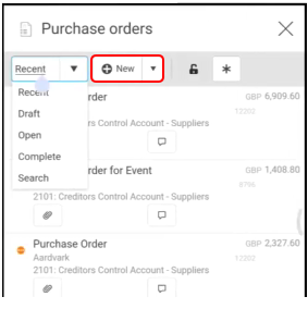 To create a new Purchase Order, select New - or select New (from template) from the drop-down button.