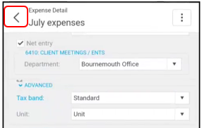 Once Line data is complete, select the back arrow to return to the main Expense Claim form.