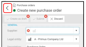 Once the Line data is complete, select the back arrow to return to the Purchase Order.