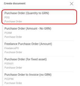 Select the Purchase Order document you require.