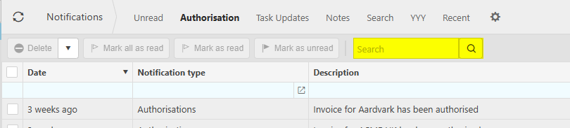 The screenshot below shows a sample grid of the notifications function, which includes some key information.