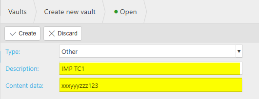 Enter a unique description and the sensitive content data - once created, the content data will show as (secret).