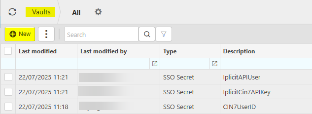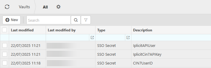 Sensitive credentials, such as API keys from Cin7 or IMP Planner, should be stored securely in the Vault to prevent unauthorized access.