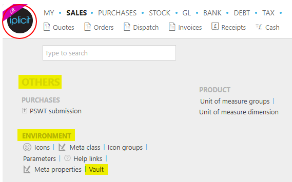 This will then show the Vault keys already defined on the system where normal customisation of Sets can be used.