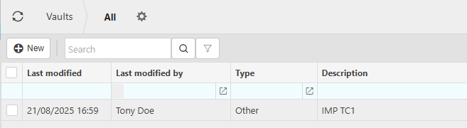Select Vaults from one of the options as shown above in Viewing Vaults.