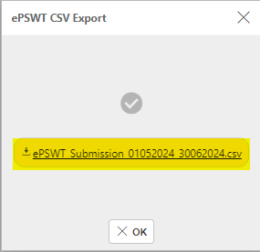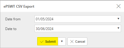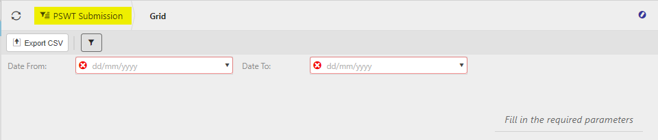 Select PSWT Submissions within required dates as shown in List PSWT Submissions above.