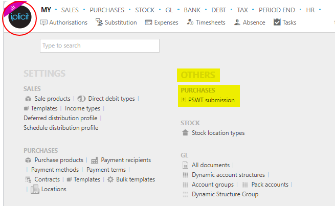 Select Purchases / PSWT submission from the Others section of the pulse menu -