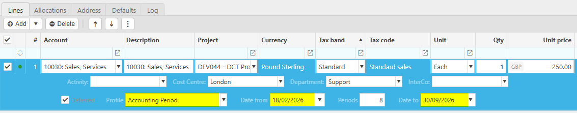 Deferred income can be automated, for more information please see Deferred income automation.