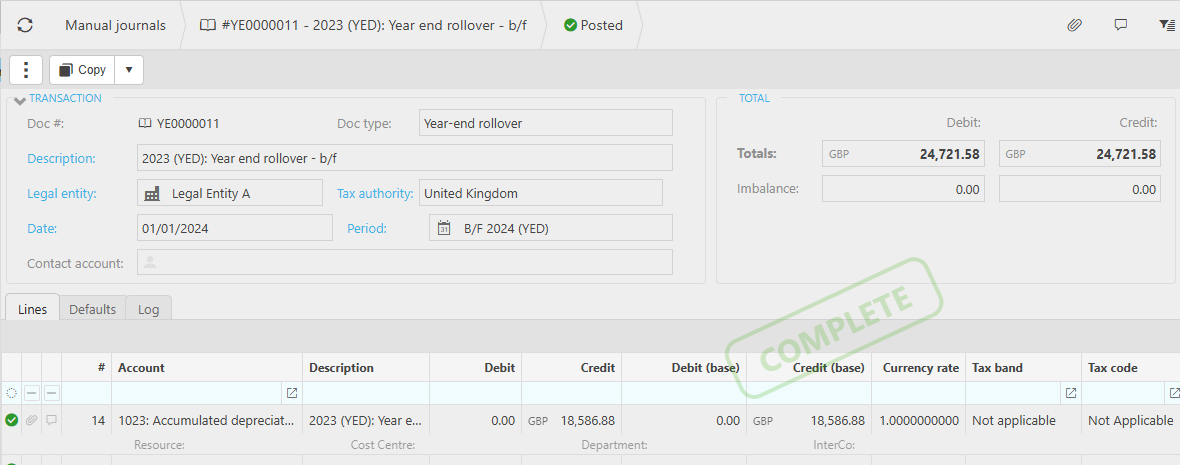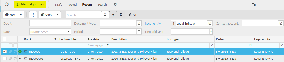 Once this process has completed, go to Manual Journals and find the YERO documents starting with YE.