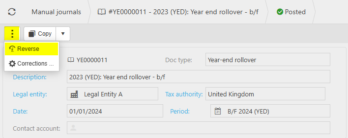You can choose to Year end one legal entity or all that are in a financial year group.