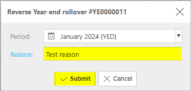 Select the Manual Journal just created by this YERO process, then select Submit to ensure it is posted.