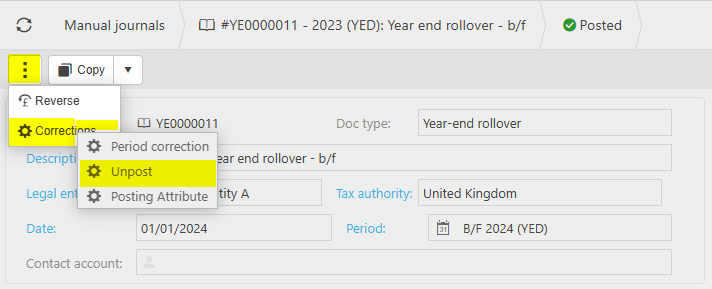 The postings generated by the YERO are created as manual journal documents. If following the posting of these documents, further revisions need to be made to the YERO then the previous YERO documents can be reversed, the corrections/ adjustments made and the YERO process repeated, thus creating new YERO documents.