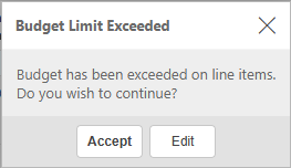 When Save is selected then a warning message shows to warn the user that the Budget limit has exceeded.