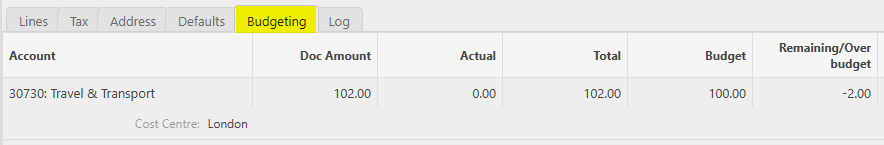 If the line items exceed the budget, if the Budget exists, then a Budgeting tab will appear.
