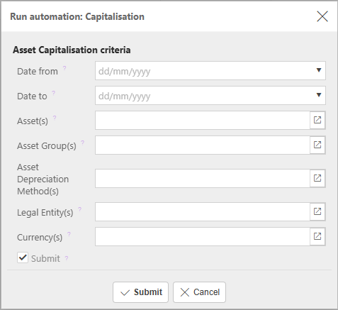 - If the Auto capitalise box is ticked on the Asset Capitalisation Rules, and the Invoice complies with all the requirements of the Asset Capitalisation Rules, then the Auto capitalisation automation will be able to create an asset from the invoice and auto-capitalise it.