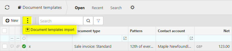 Select Document / Document Templates from the Settings section of the pulse menu -