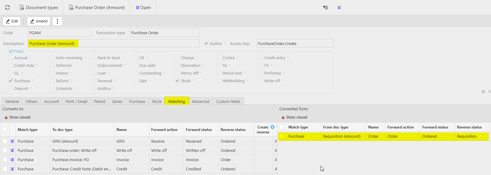 Auto reversing: When this checkbox is ticked, this document type is available to be auto reversed.