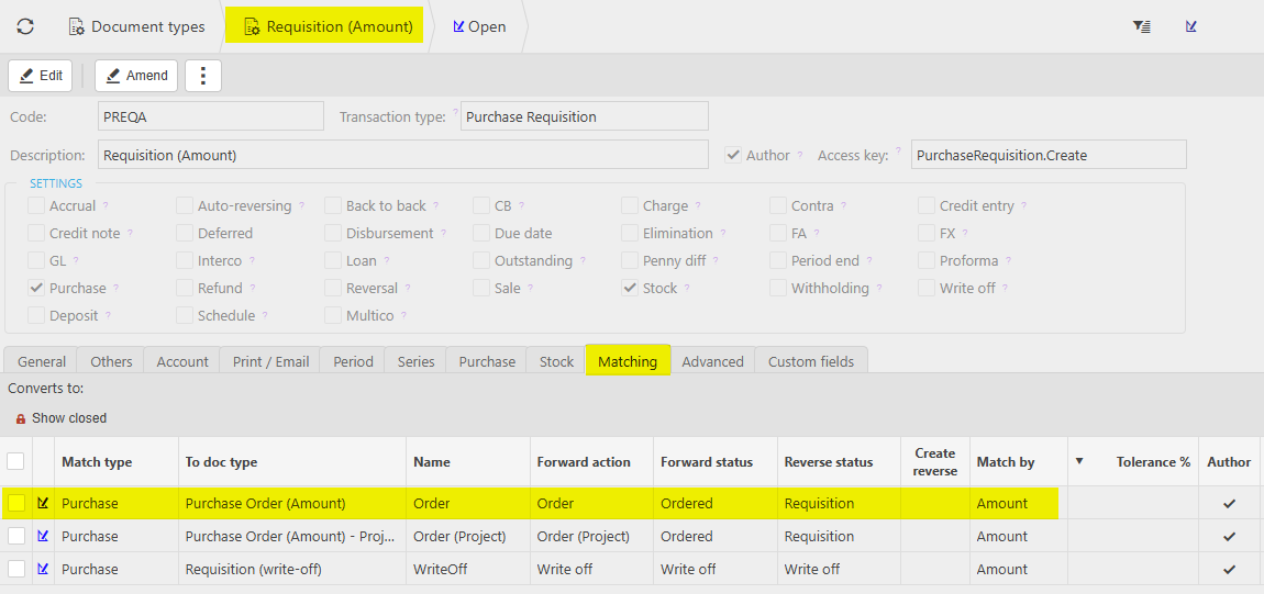 Accrual: When this checkbox is ticked, this document type is available for accruals.