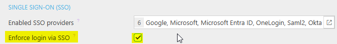 Selecting Google and Microsoft will result in Enforce login via SSO field only.