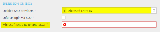 The appearance of fields below will depend on the selected SSO provider(s).