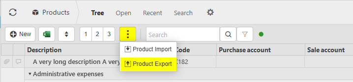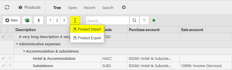 This section will show all Products on the system. To view specific Products for differing documents, you can view these on the individual areas - Purchase products, Sale products, Expense products, Stock products, Timesheet products or Loan products.