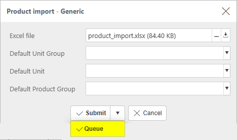 Selecting Queue from the dropdown option will queue the import process until other actions in iplicit are completed.