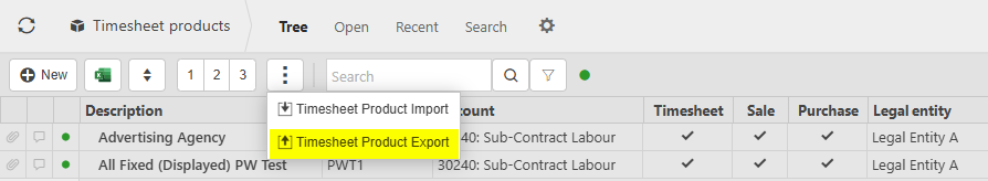 Select Timesheet products from one of the options as shown above in Viewing Timesheet products.