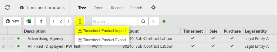 Import/Export Timesheet products