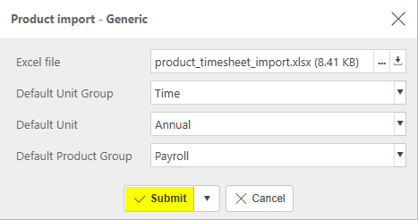 icon and select Timesheet Product Import.