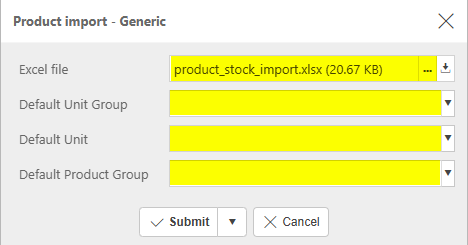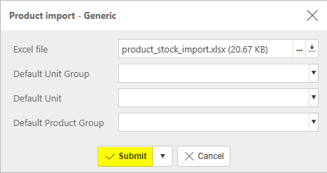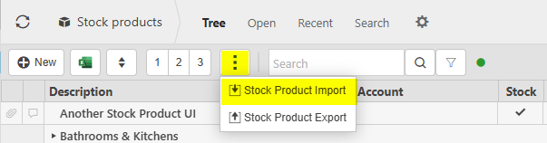 icon and select Stock Product Import.