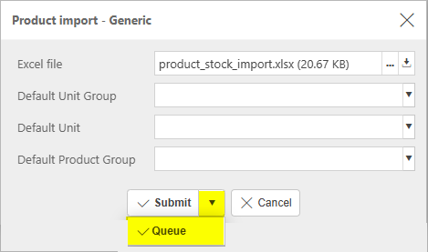 Selecting Queue from the dropdown option will queue the import process until other actions in iplicit are completed.
